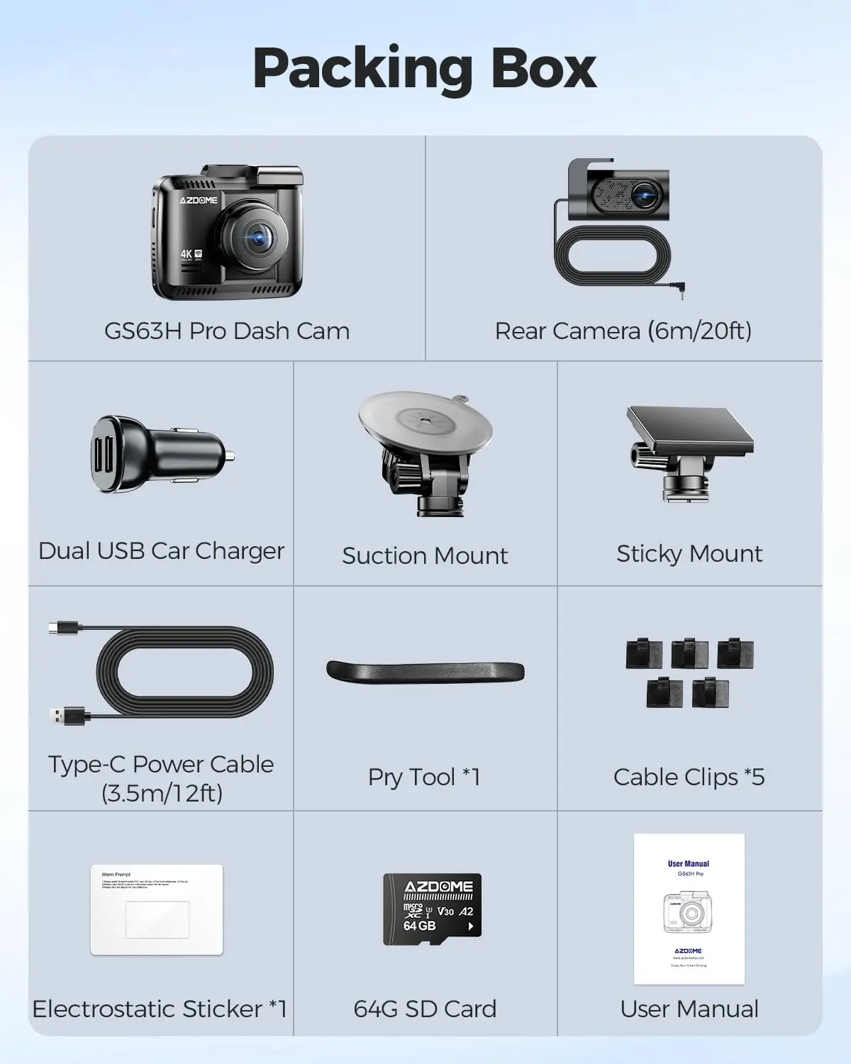 AZDOME Dash Cam GS63H Pro 4K+1080P 2.4 6