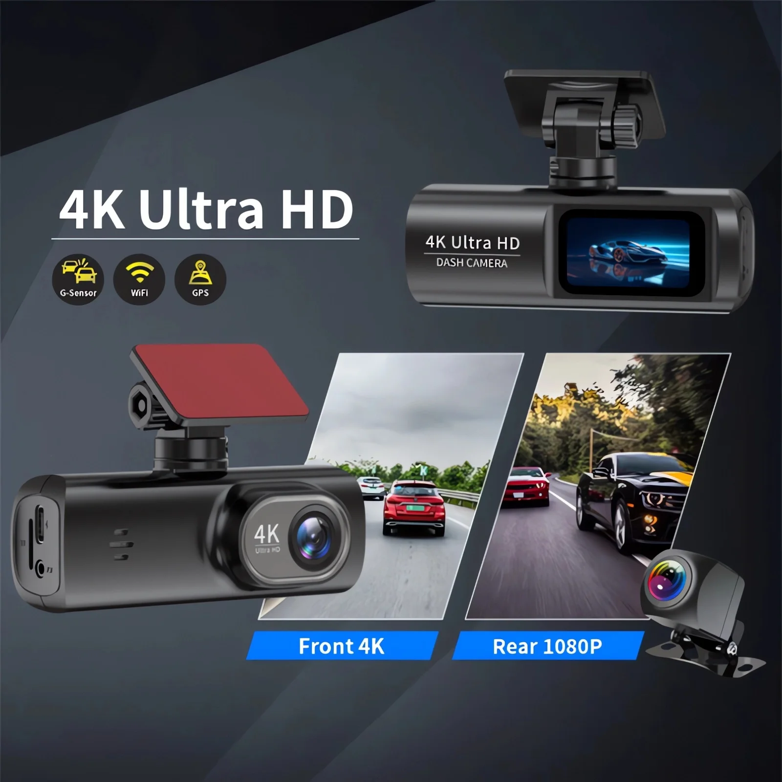 Dash Cam 4K+1080P Dual Lens WIFI GPS Car DVR Camera Video Drive Recorder Dashcam Dual Lens Black Box Front and Rear Night Vision 3