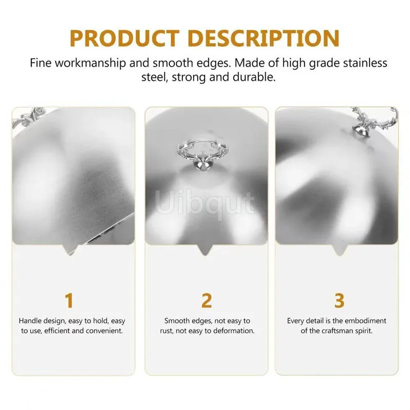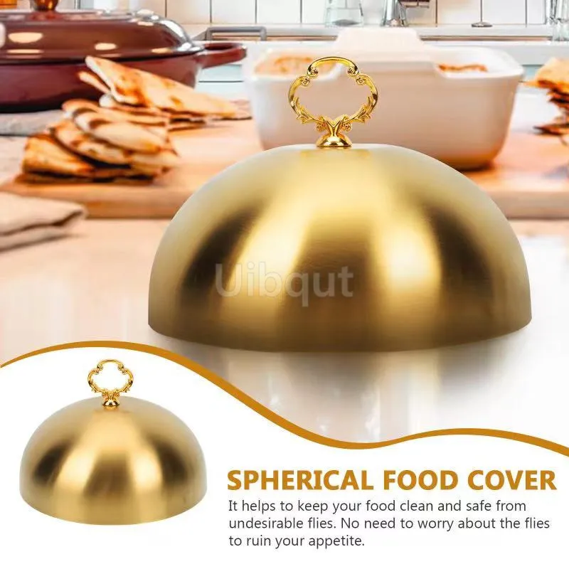 1 review for golden Cover Food Stainless Dome Lid Tent Protector Steak Serving tray For Melting Kitchen Metal Cheese Plate Cover Dish Basting