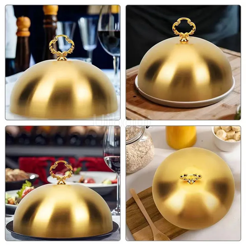 golden Cover Food Stainless Dome Lid Tent Protector Steak Serving tray For Melting Kitchen Metal Cheese Plate Cover Dish Basting 4