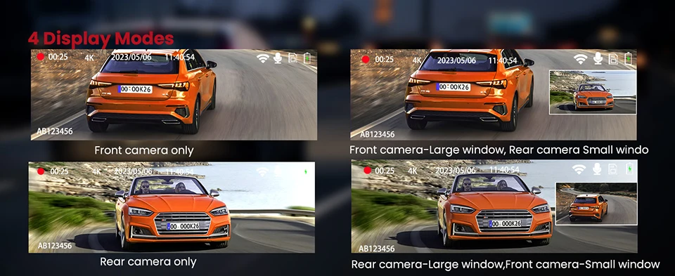 âžÃ‚¤Memory Card: Micro SD Card, class 10 and 64GB to 256GB (Not included) âžÃ‚¤Rear Camera Upgrade: Support max 10 meters cable Rear Camera âžÃ‚¤Add Features: Night Vision, 3840x2160P front Camera, 4K video resolution, WiFi, External GPS tracking