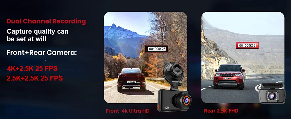 Yangood 4K Camera Optional 2.5K Rear Lens And External GPS New Dual Channel Ultra Night VisionParking Monitoring WlFl Connection
